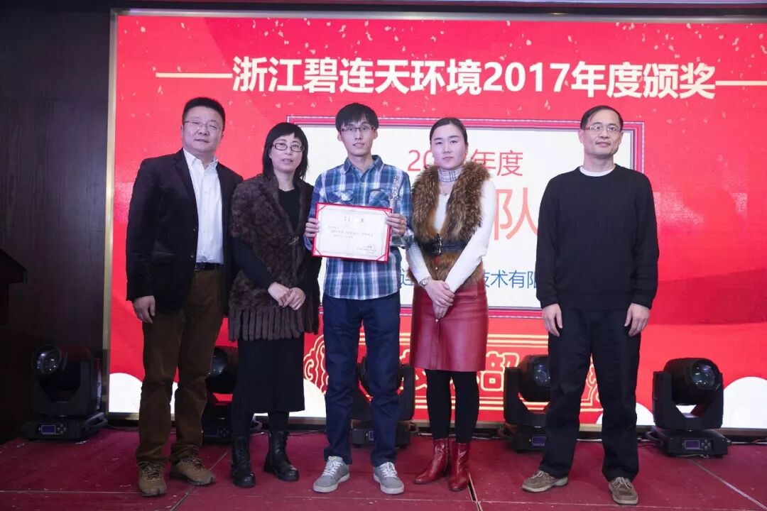 技术部获得优秀团队奖。2017年技术部的全体成员在徐博士的引领下,攻克技术难关、团结协作圆满完成了公司承接的所有项目。团队代表王根领奖。