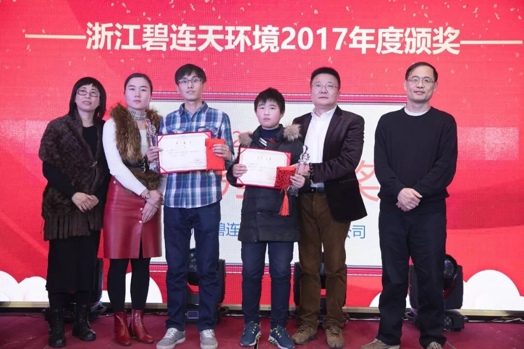 拒绝平庸,追求卓越,丰富了他们生命的底色;敬业奉献,勇于超越,成就了他们报效企业的真挚情怀。一点点耕耘,一份份收获,他们付出了努力,收获了成功。2017年度公司优秀员工分别为技术部王根和工程部潘玉标(其所负责项目处于最后冲刺阶段而不能回来参会领奖,公司特邀其家属代领)。
