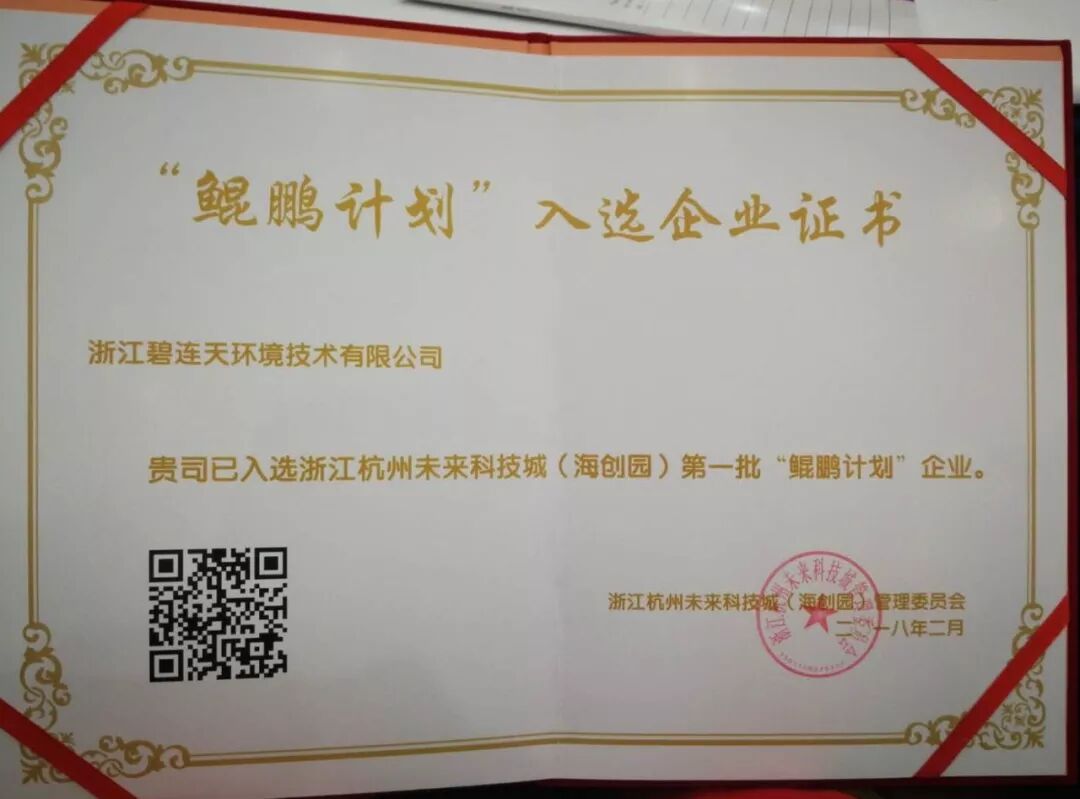 浙江碧连天环境有限公司入选第一批“鲲鹏计划”